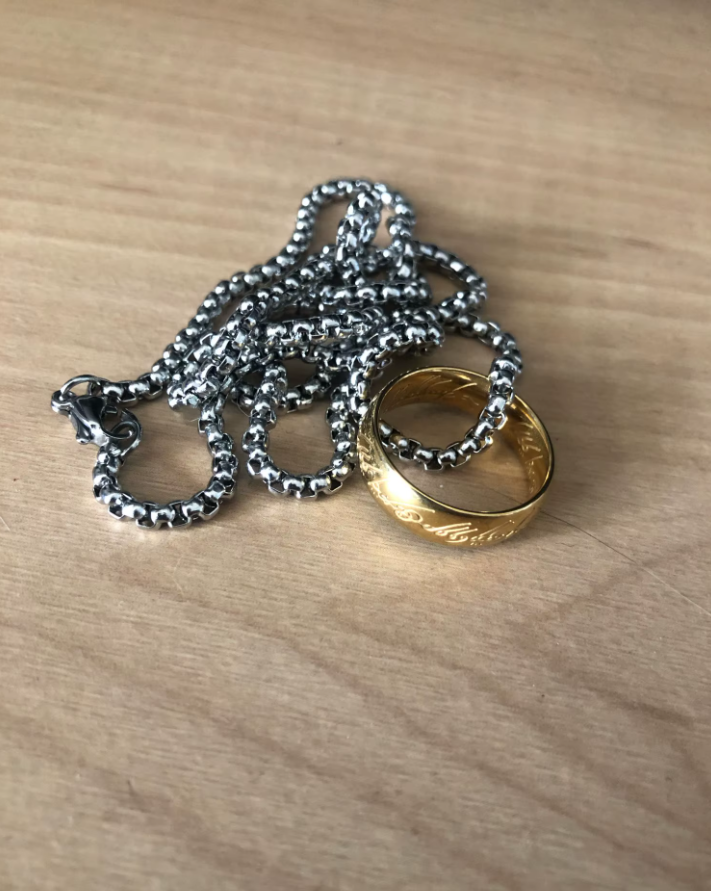 A timeless keepsake for those who still believe in the tales of Hobbits, Rangers, and Kings. Let this necklace remind you that even the smallest person can change the course of the future.